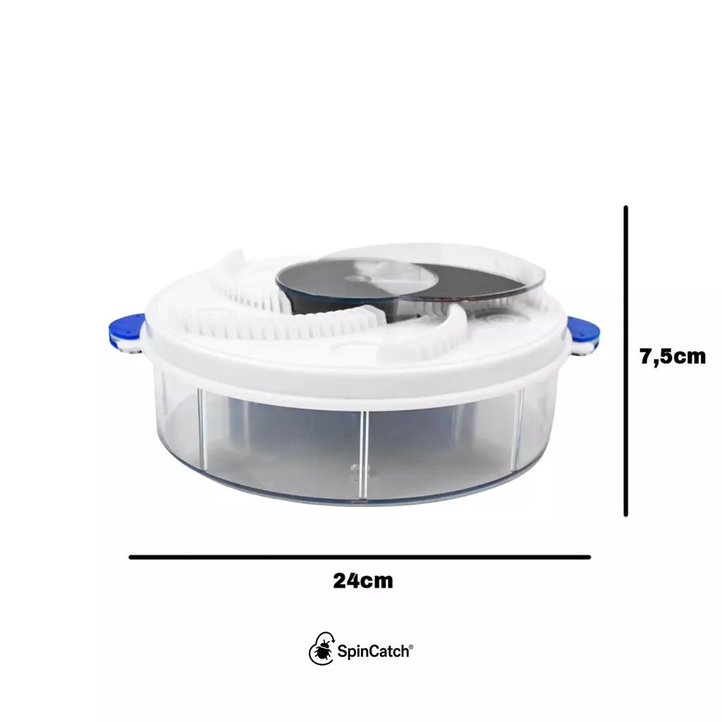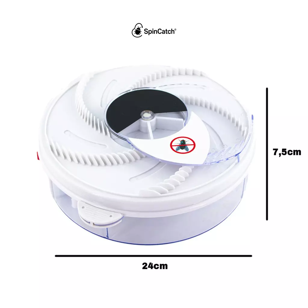 Chega de moscas incomodando, contaminando seus alimentos e trazendo riscos à saúde! A SpinCatch® é a armadilha elétrica giratória que atrai, captura e elimina moscas de forma silenciosa, segura e sem usar produtos químicos.
