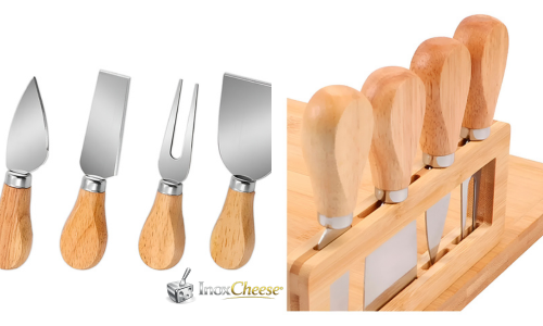Utensílios: faca para queijo macio, faca para queijo duro, espátula e garfo