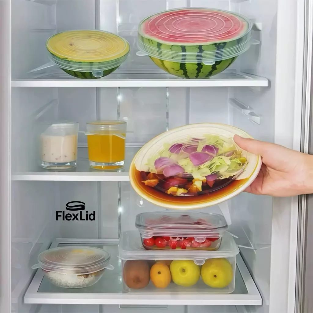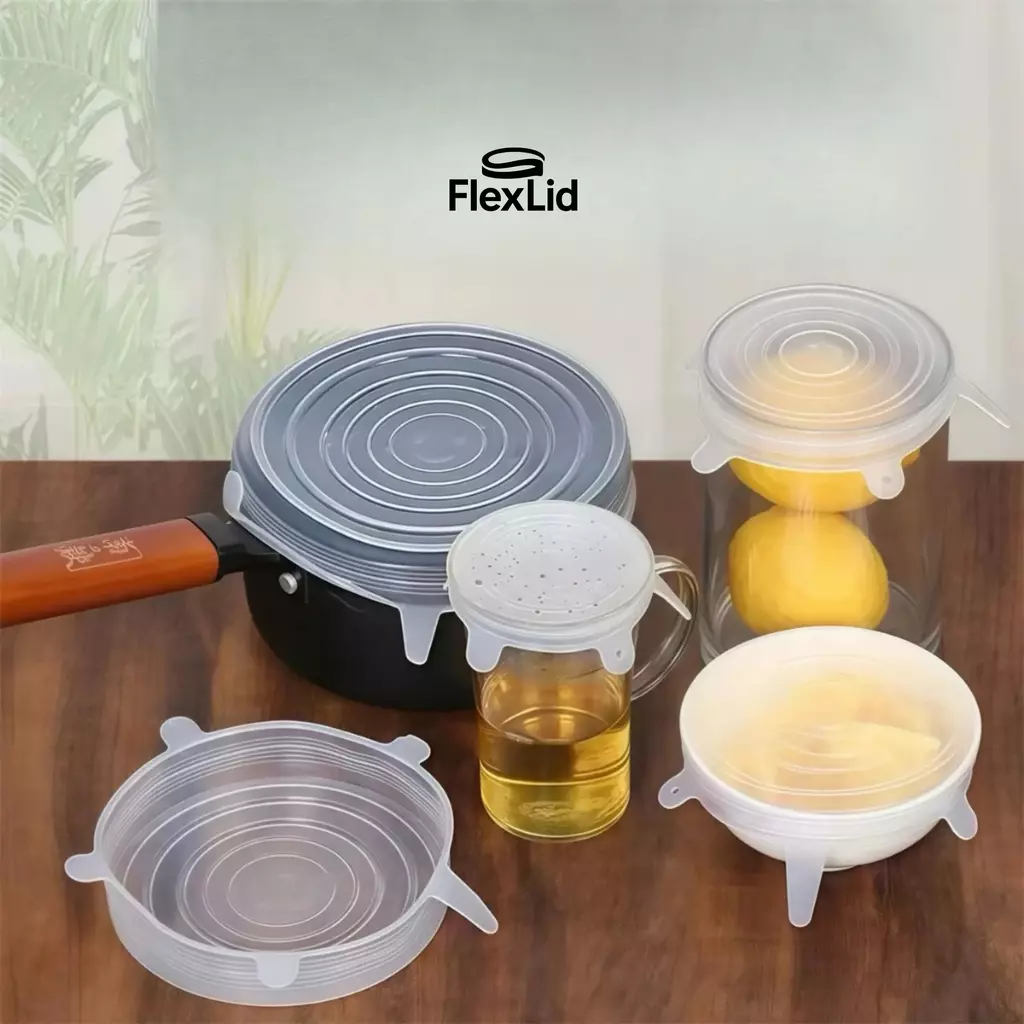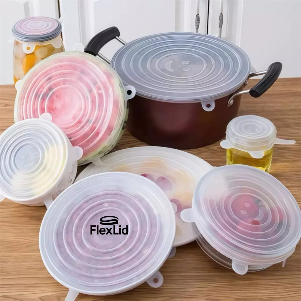 O FlexLid® é o kit definitivo de tampas de silicone elásticas, feito para quem busca praticidade, economia e conservação máxima dos alimentos no dia a dia.
