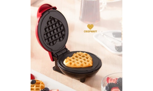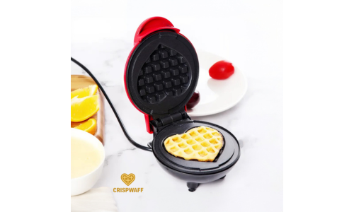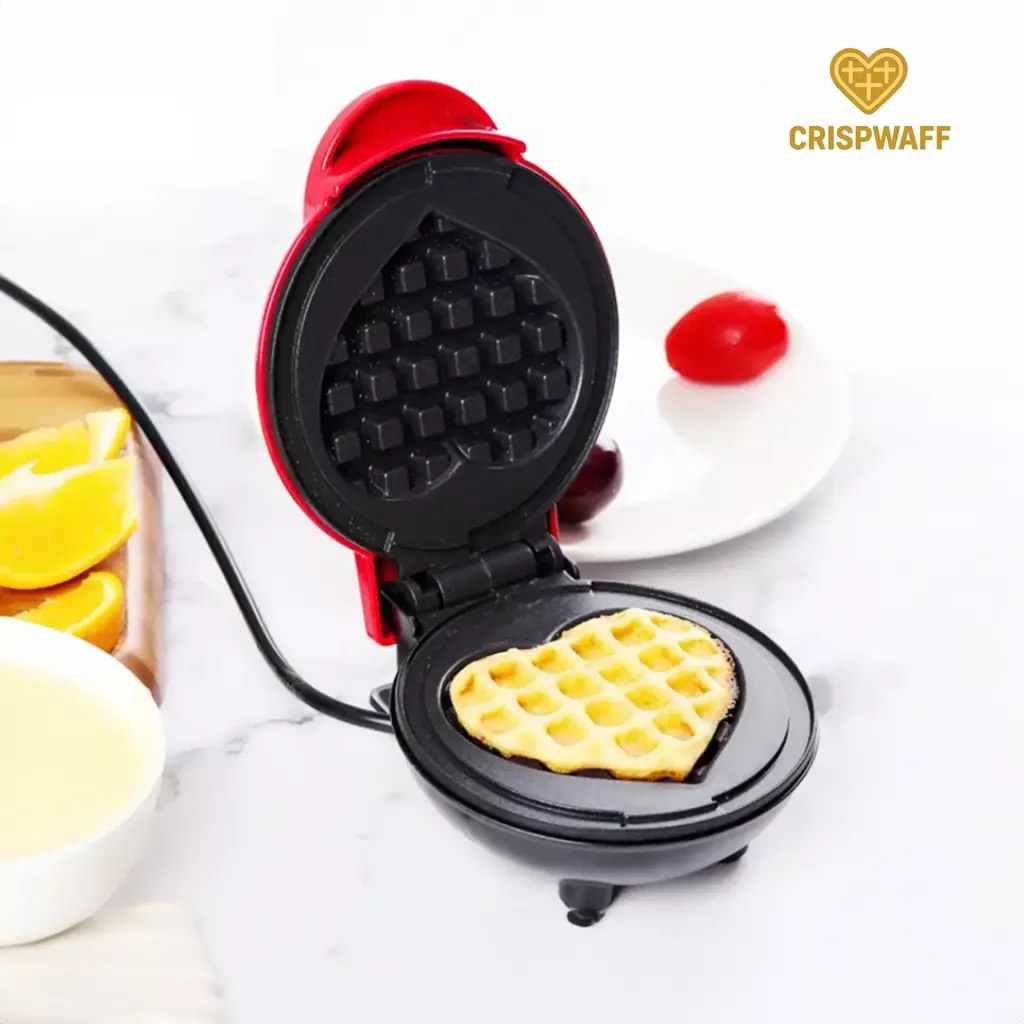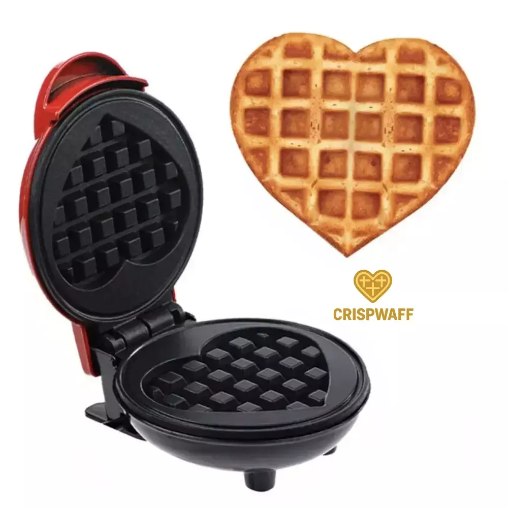 Transforme qualquer café da manhã, lanche da tarde ou ocasião especial em um momento doce e inesquecível com a CrispWaff®, a mini máquina elétrica retrô que prepara waffles fofinhos, dourados e irresistíveis — em formato de coração!